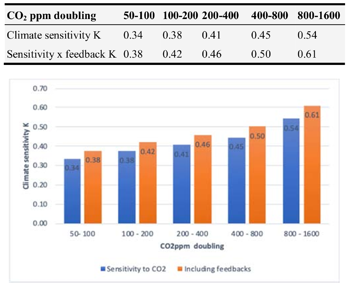 Figure 3: Climate sensitivity to carbon dioxide doublings